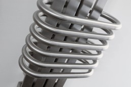 A clever combination of four vertical bars, encased by sets of horizontal tubes to hang your towels.