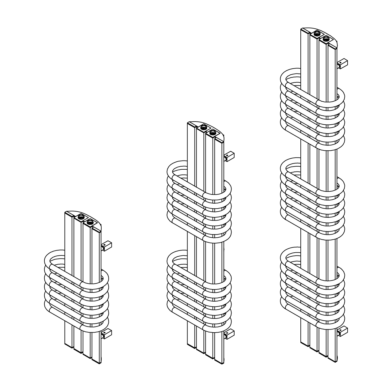 Three size options, with one, two or three towel rail sections. From 630mm to 1500mm high, with electric, hot water or dual fuel options.